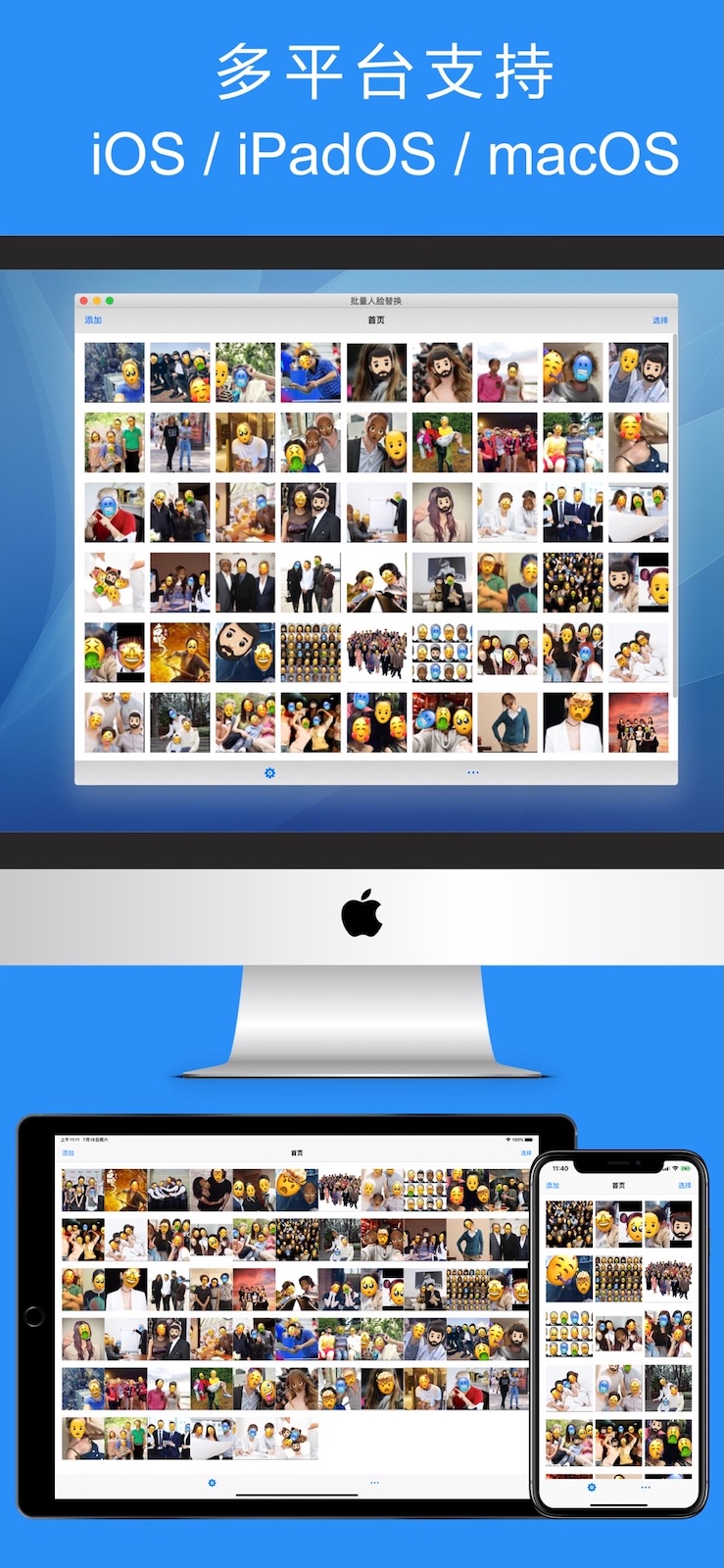 有时候,您拍照了很多照片,您希望保留部分隐私的同时(不暴露面孔),又能分享这些照片到朋友圈或社交网络,而且能够批量、快速地处理这些照片,那么,“批量人脸识别替换”这个应用程序将很好的满足了您的需要。