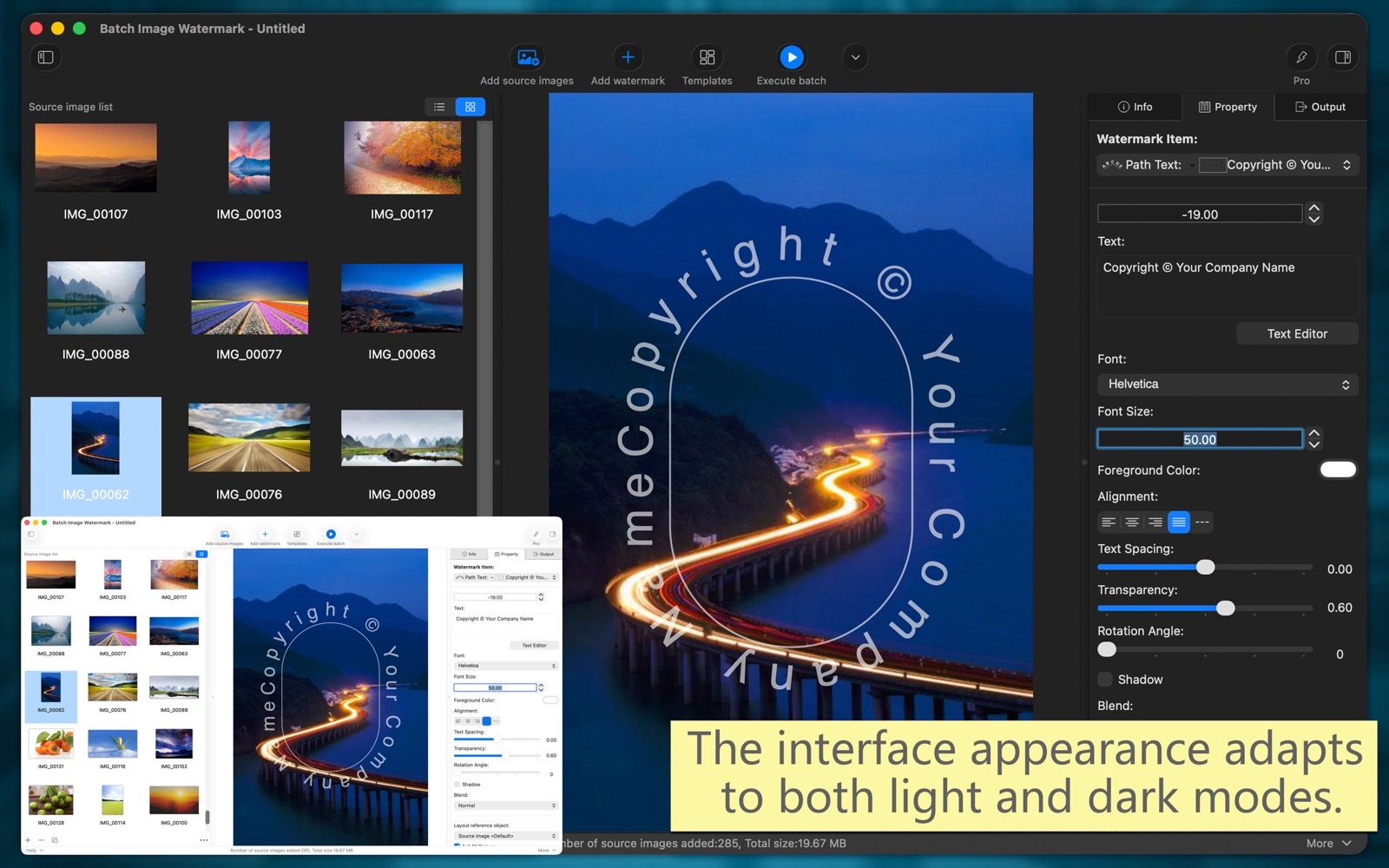 (The new version will offer even more types of watermarks) - Easily design watermarks visually, with real-time preview of watermark effects across different images, seeing exactly what you get.