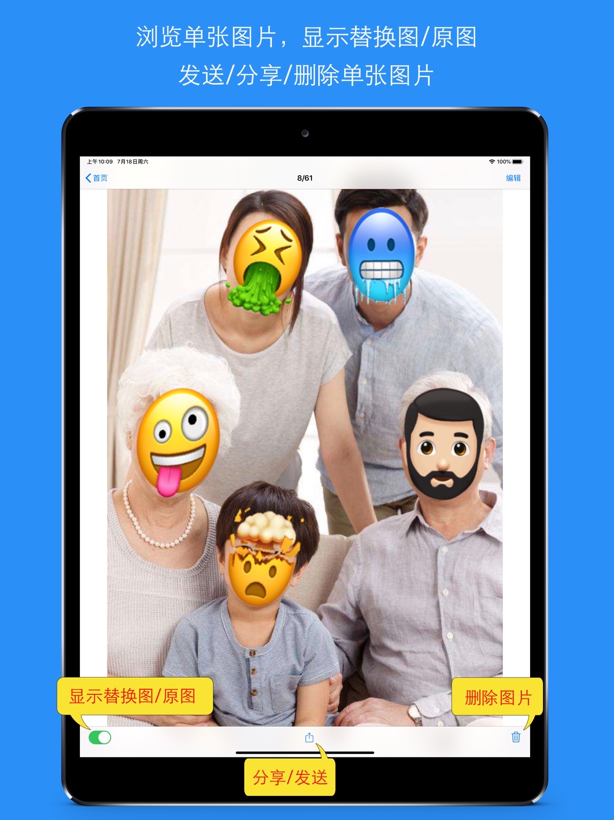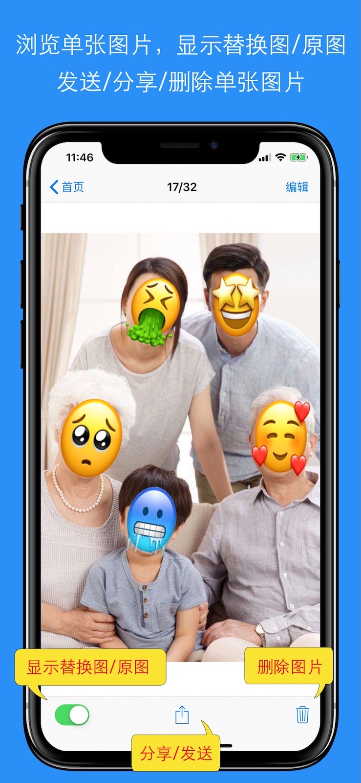 - 被替换/遮挡的人脸,可以一键切换到原图查看。