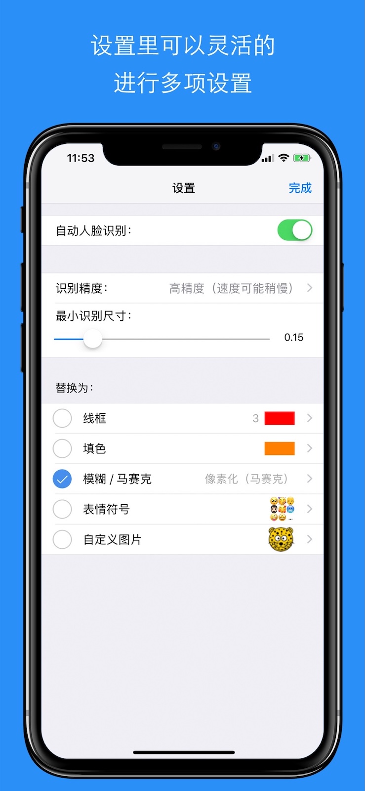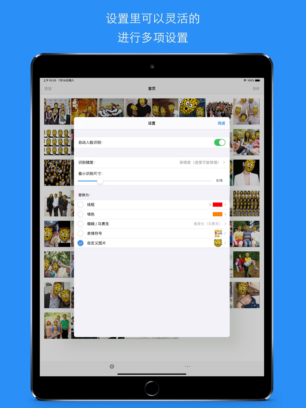 (6)自定义图片:可以从从您手机、平板、电脑和设备上选取一张图片来作为遮挡图片。