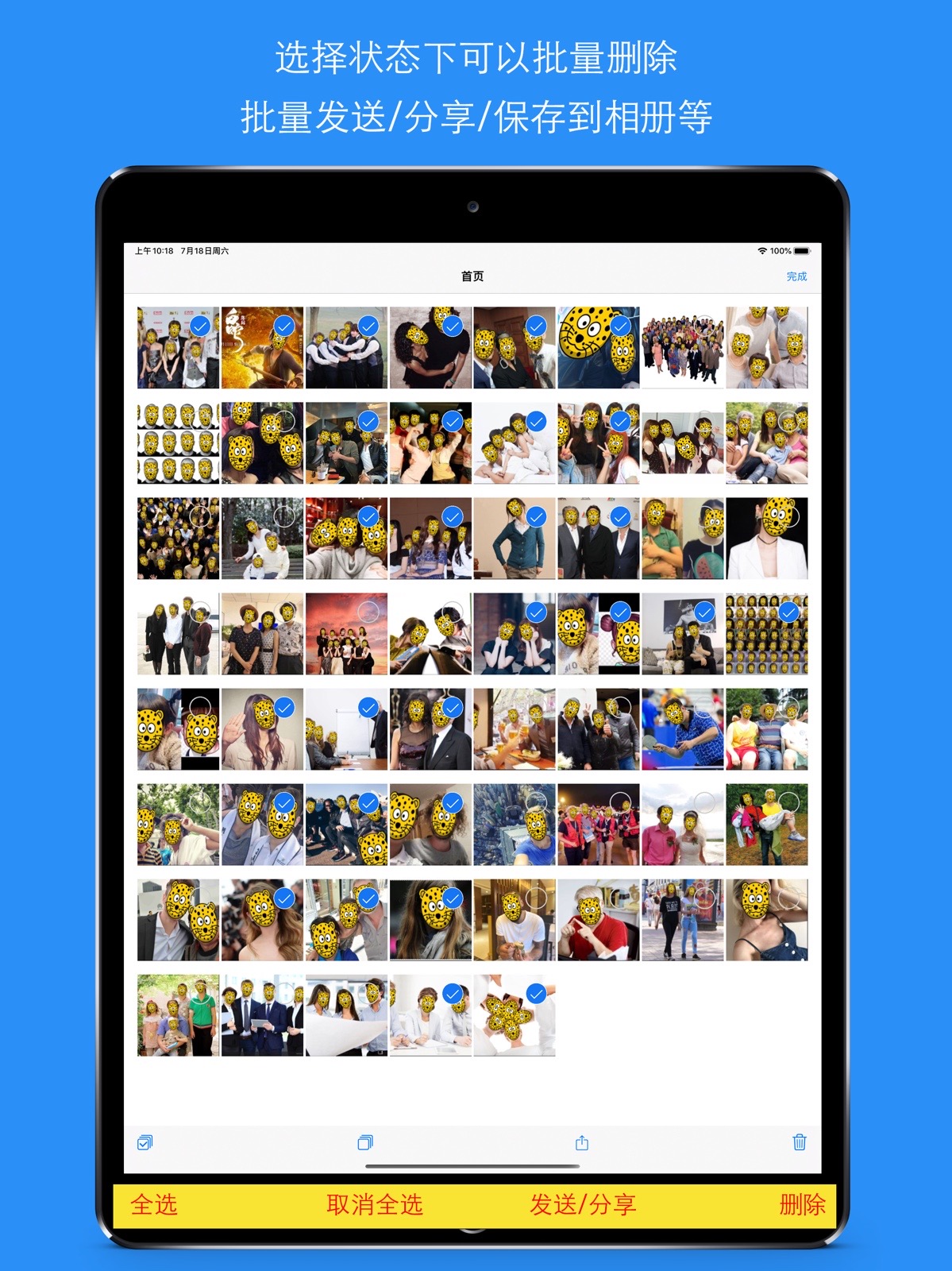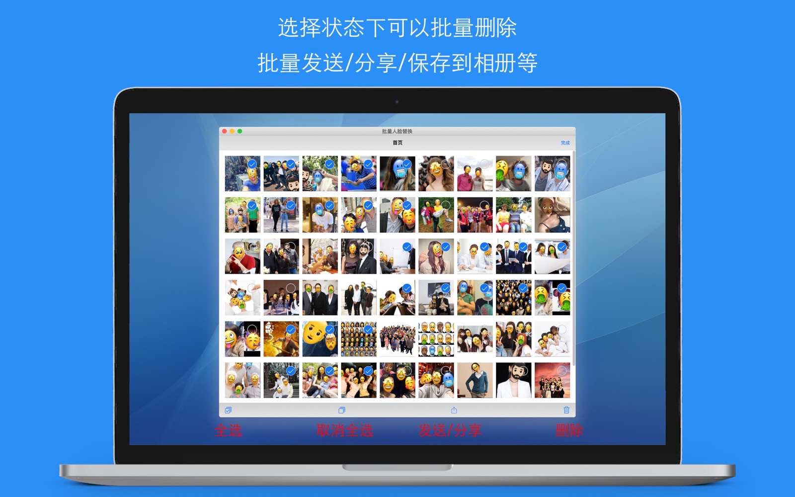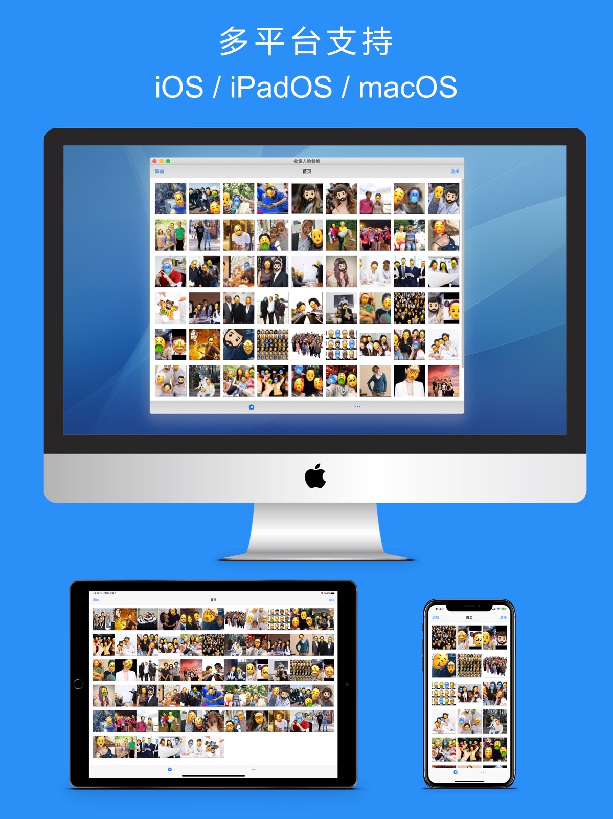 有时候,您拍照了很多照片,您希望保留部分隐私的同时(不暴露面孔),又能分享这些照片到朋友圈或社交网络,而且能够批量、快速地处理这些照片,那么,“批量人脸识别替换”这个应用程序将很好的满足了您的需要。
