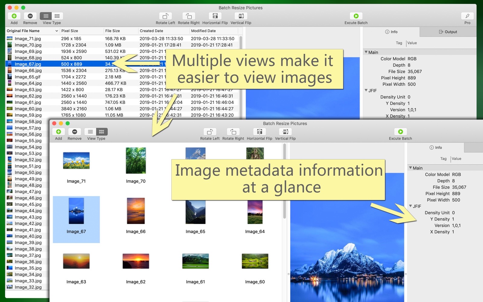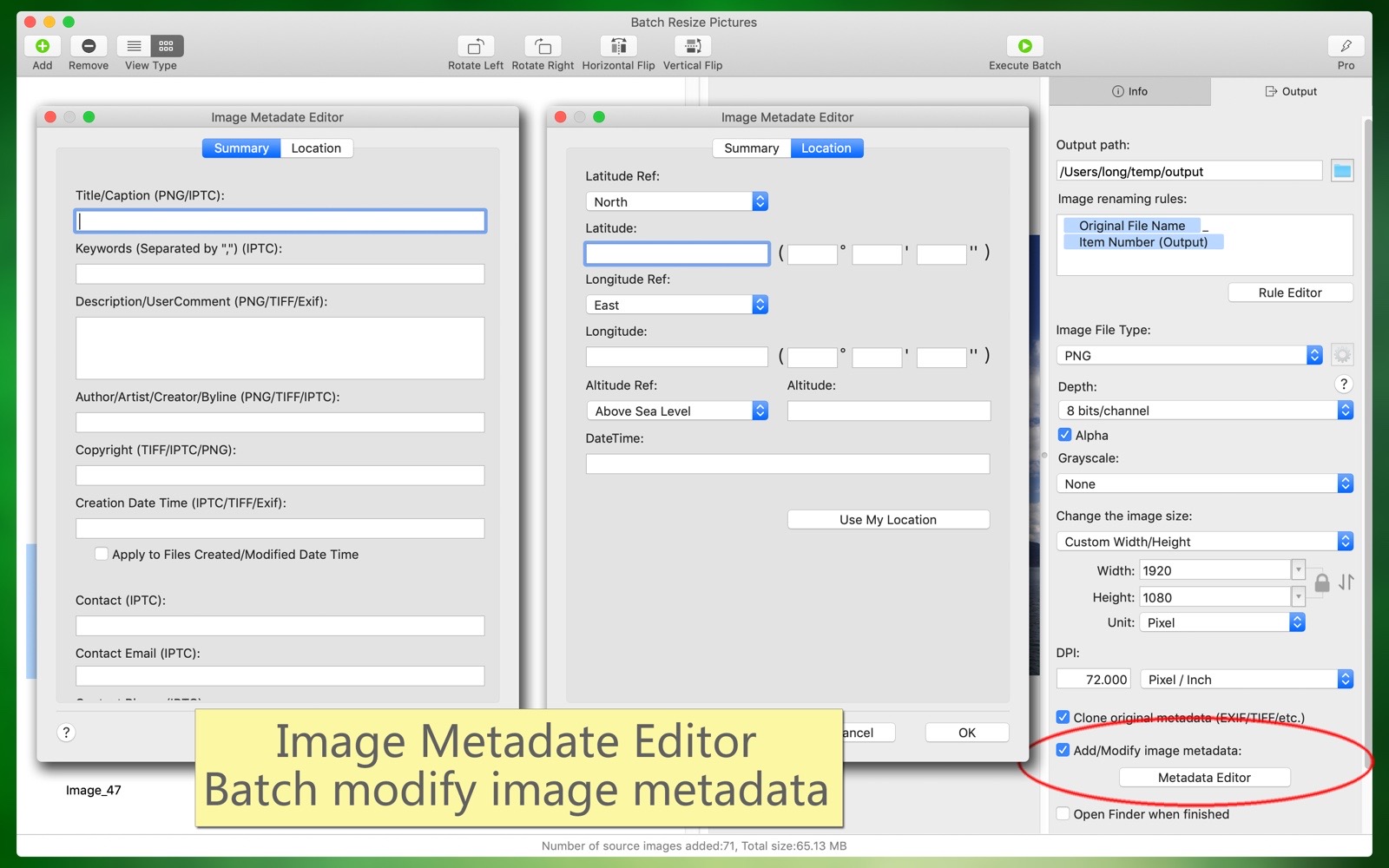 Batch add and modify image metadata information.