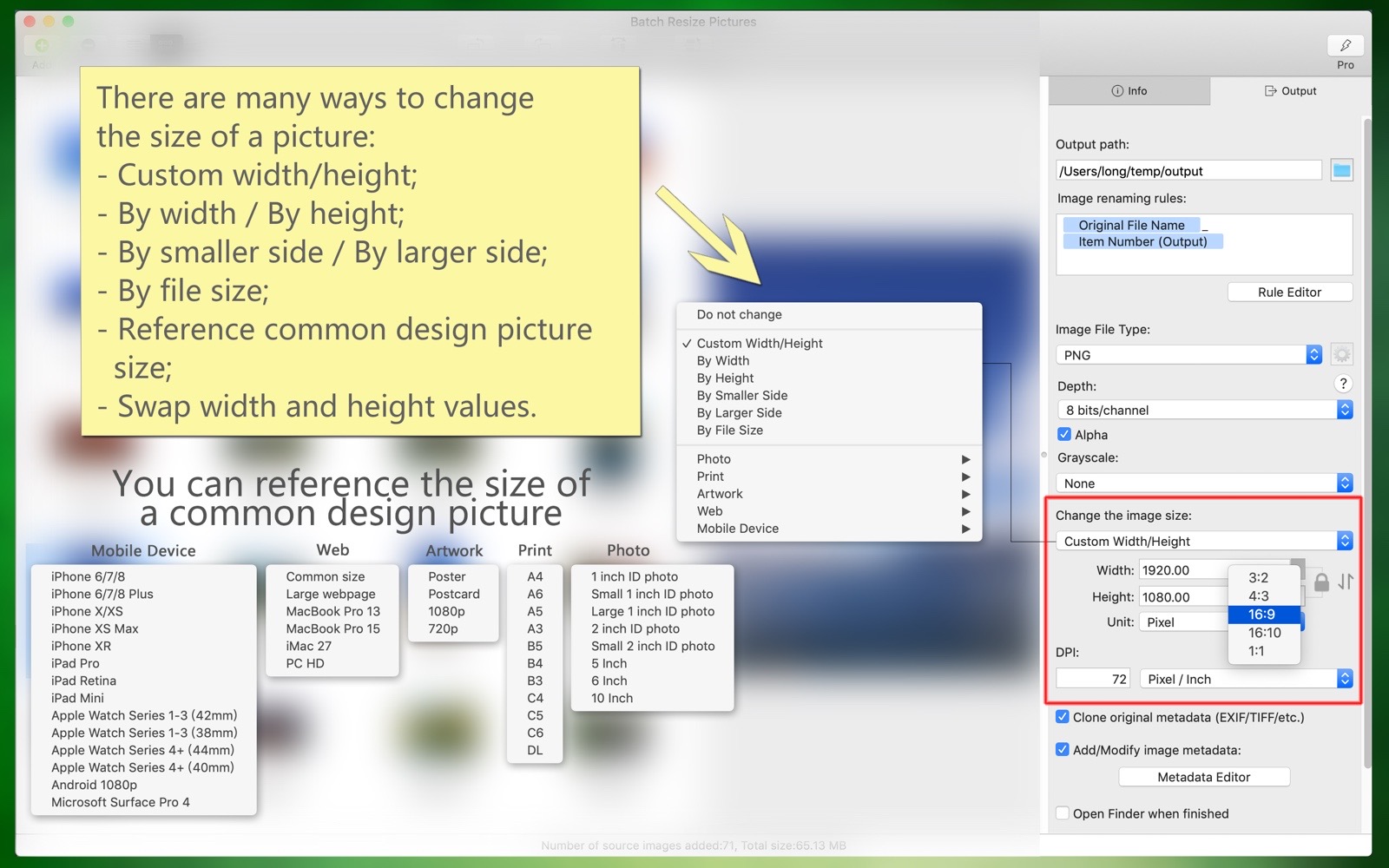 - Batch modify image resolution (DPI), or keep the original resolution.