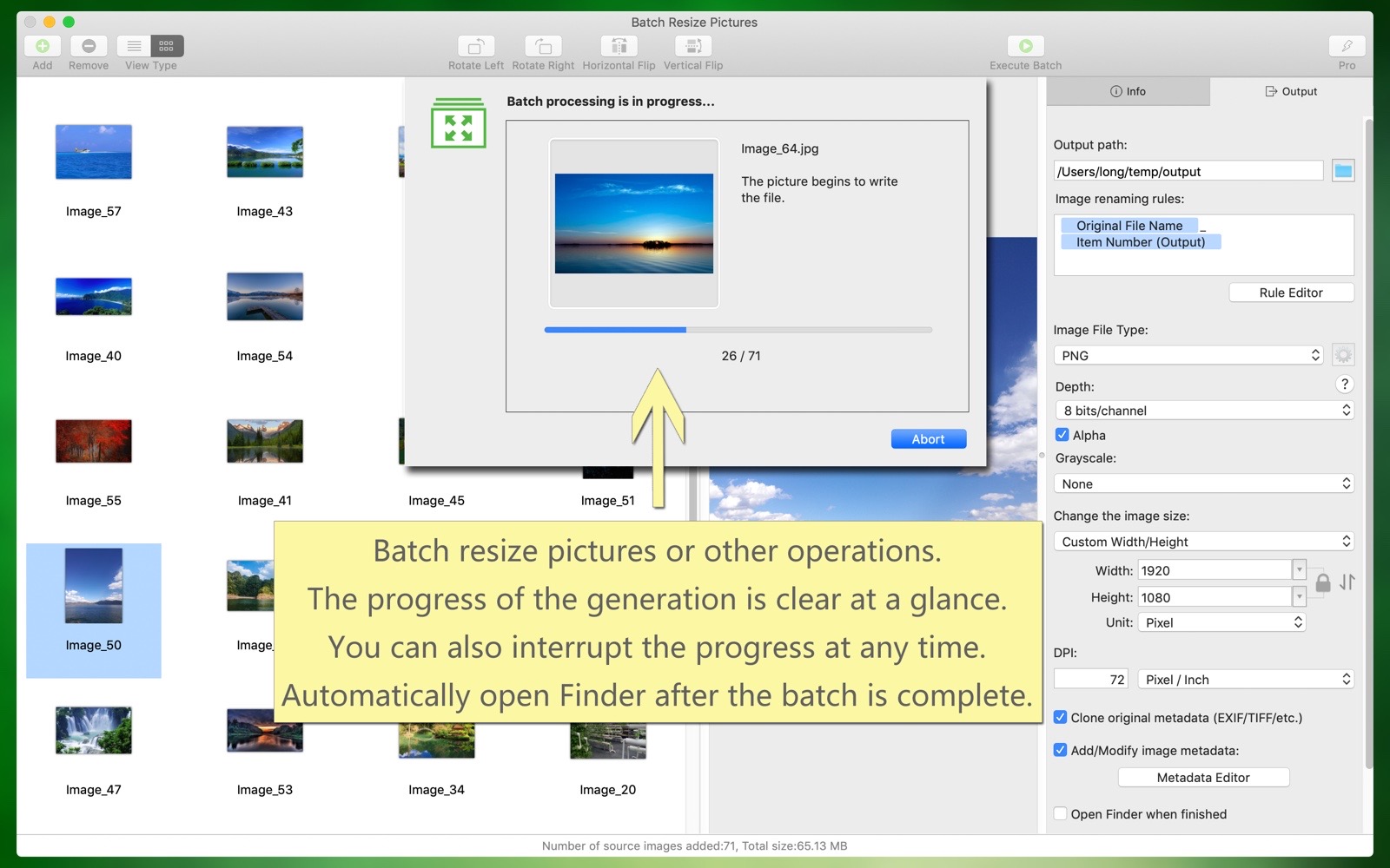 Batch rename output image filenames.