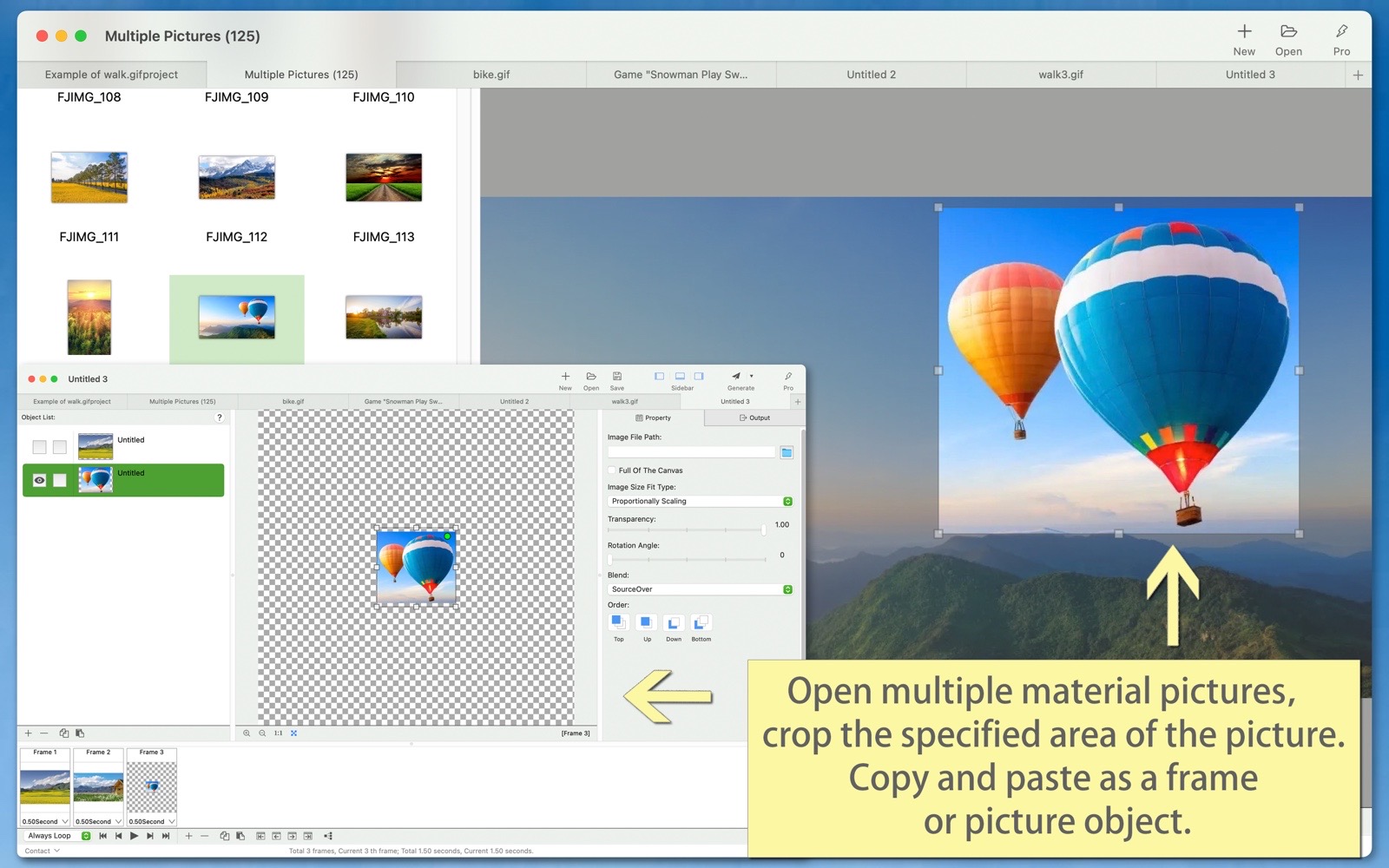 (1) The frame list is clear at a glance, and you can modify the delay time of each frame. Adjusting the frame order is simple and quick. Copy multiple image files in Finder and paste them directly into the frame list to create new frames quickly and conveniently.