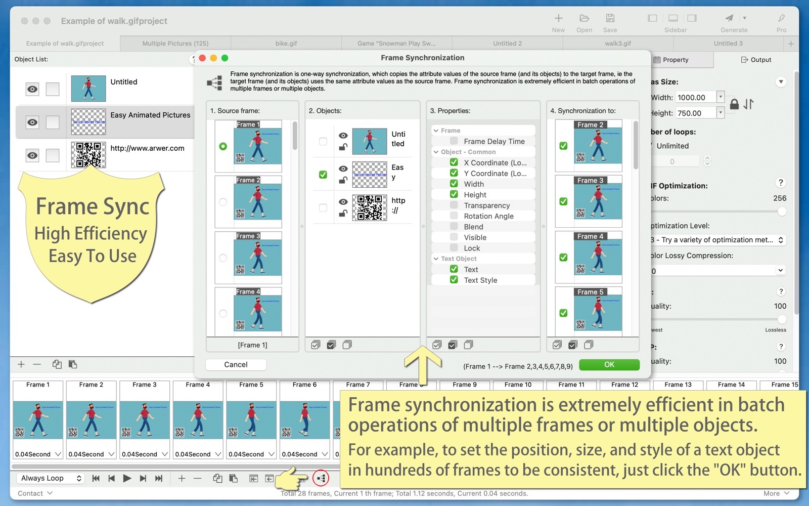 - Frame synchronization is extremely efficient when performing batch operations on multiple frames or objects. For example, if you want to make the position, size, and style of a text object consistent across hundreds of frames, it can all be done with just one click of the 'Confirm' button.