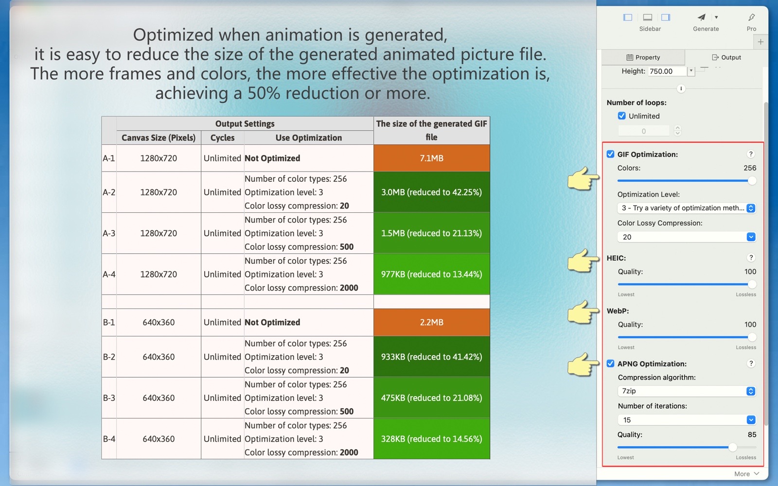 - Using the optimized settings of this software, you can easily reduce the file size of the generated animated images, achieving a reduction of 50% or even smaller.