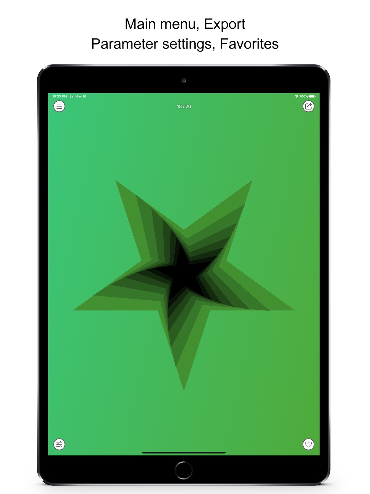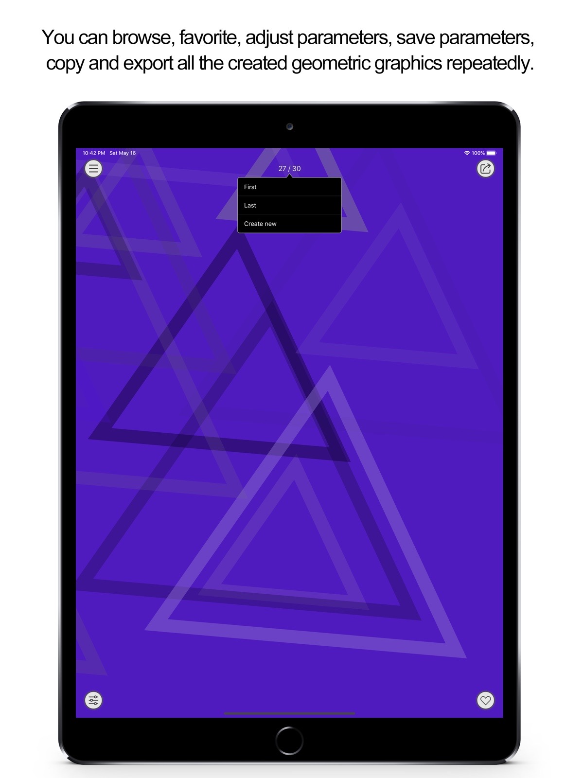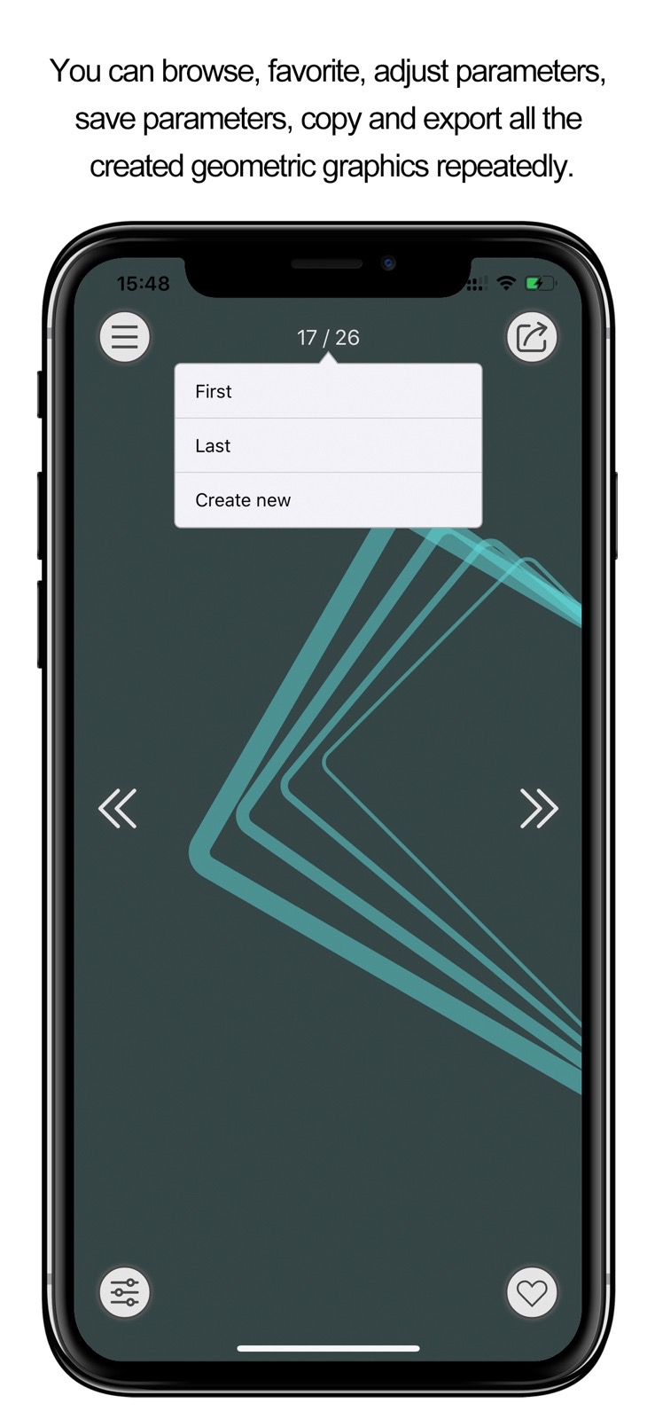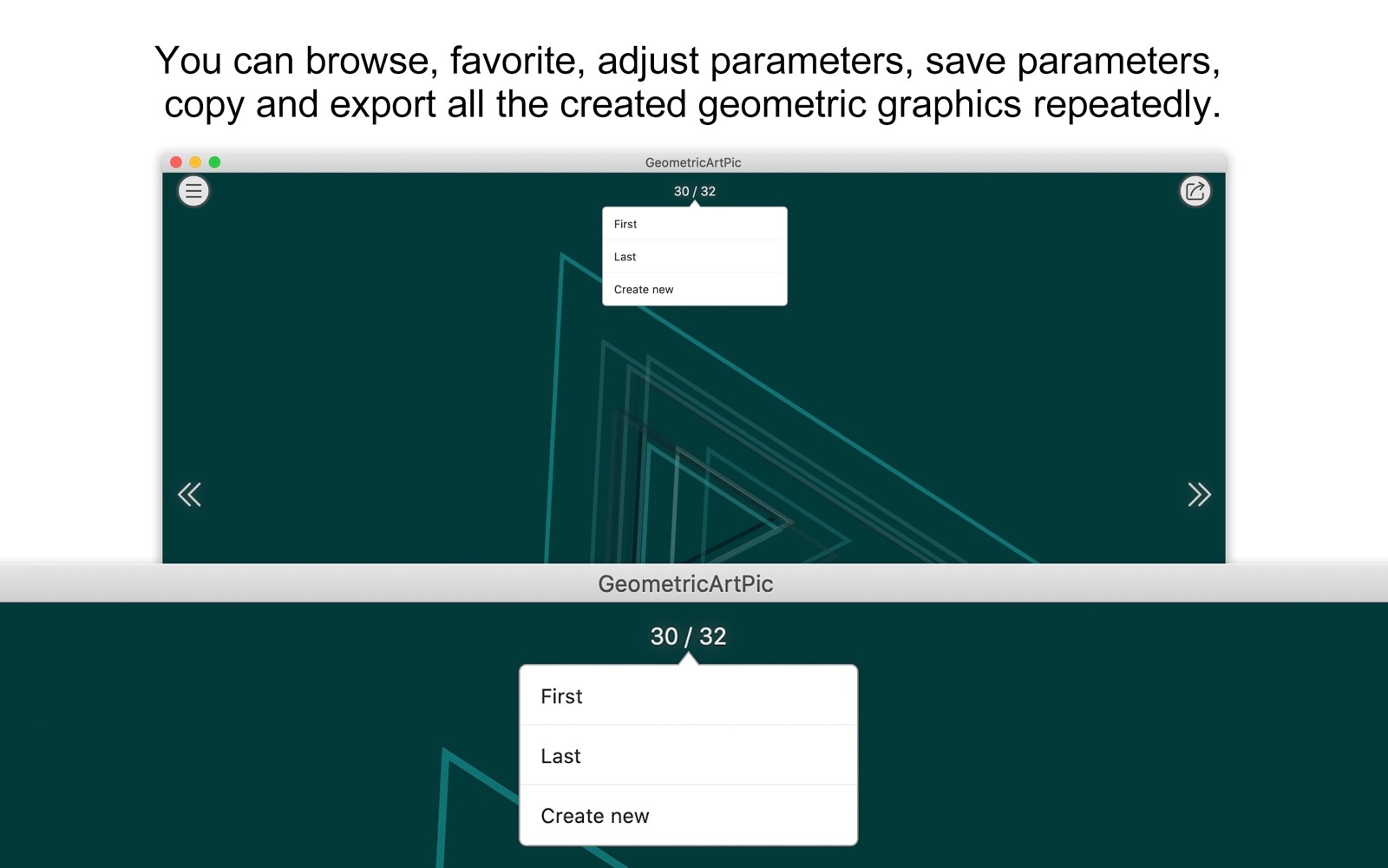 Note: The new version will continue to add new geometric themes and styles. - Don't miss any one: you can browse, favorite, adjust parameters, save parameters, copy and export all the created geometric graphics repeatedly.
